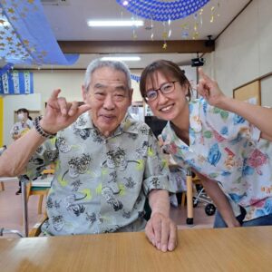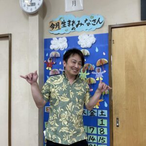 六月になりスタッフも衣替えです。 はっぴーはハワイをテーマにしています。 アロハシャツにジーパンやチノパン 色とりどりのアロハシャツにご利用者さんも「鮮やかで素敵ね」 「僕もアロハシャツ持ってるよ!」と着て来所される方もいらっしゃいます。 視覚から五感を刺激するって大事ですね‼