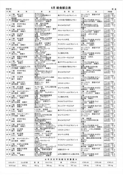 特別養護老人ホーム元気館 令和7年6月の献立表