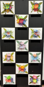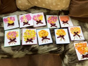 文化祭に向け塗り絵やスクラッチアート、折り紙、編み物等に取り組んできた利用者様。